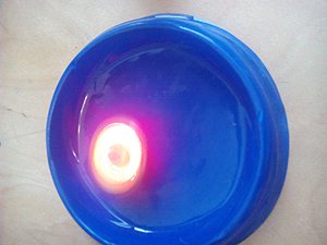 Когда проводок был готов к пайке, я расспросил детей о том, как быть дальше. Я объяснил, что если просто соединить светодиод с батарейками, то он будет светиться всё время и батарейки быстро сядут. Нам же необходимо, чтобы батарейки светились только тогда, когда бей-блейд (юла) крутится. Как это сделать? - спросил я Андрея. Андрей подумал около десяти секунд и сказал что не знает. Тогда я сказал, что подскажу ему и что он сможет найти ответ.